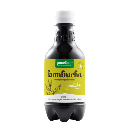 BIO & VEGAN. Kombucha curcuma. 330 ml. Le kombucha au goût de matcha est naturellement fermenté, non pasteurisé et sans additif.
